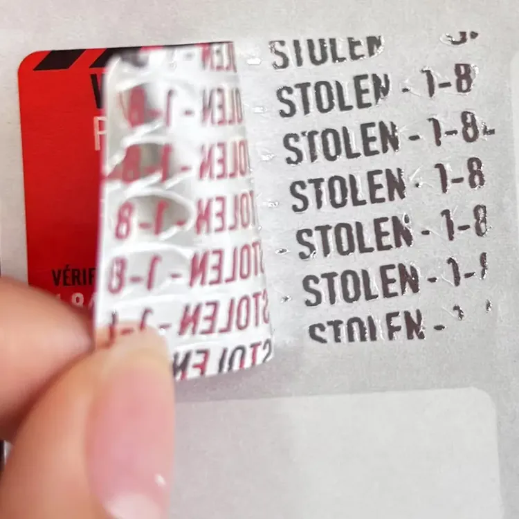 5. хрупкая анти-отсека: Изготовлен из хрупкого бумажного материала. Как только этикетка будет открыт, она будет повреждена ,, и этикетка разбивается на нерегулярные мелкие кусочки, что затрудняет восстановление и неспособность полностью пережить, эффективно предотвращая копирование и повторное использование этикетки.