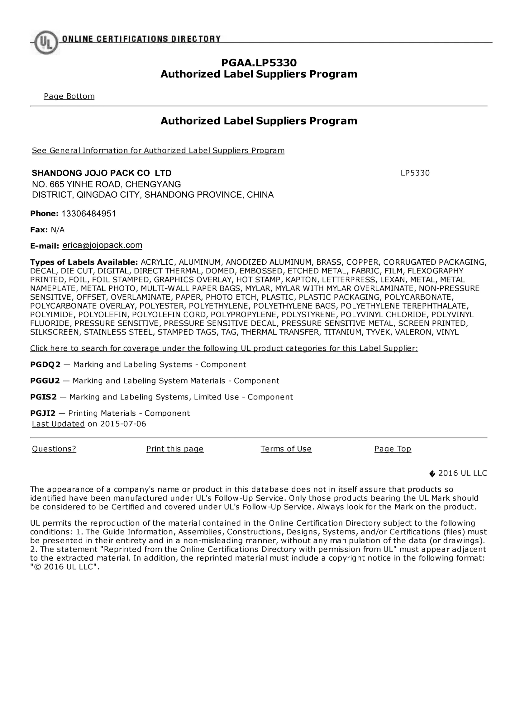 Jojo Packможет похвастаться семинаром площадью 18 000 квадратных метров, дополненной профессиональной командой, освещающей дизайн, обработку и исследования и разработки. Наши наклейки и этикетки соответствуют строгим стандартам сертификации, включая систему управления качеством ISO 9001, а также сертификаты CMA, FSC, UL и SGS.